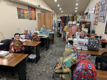 As we mentioned before, our class space is now up and running! Yay! Layne taught an excellent patchwork duffle bag class in November. The results are beautiful!